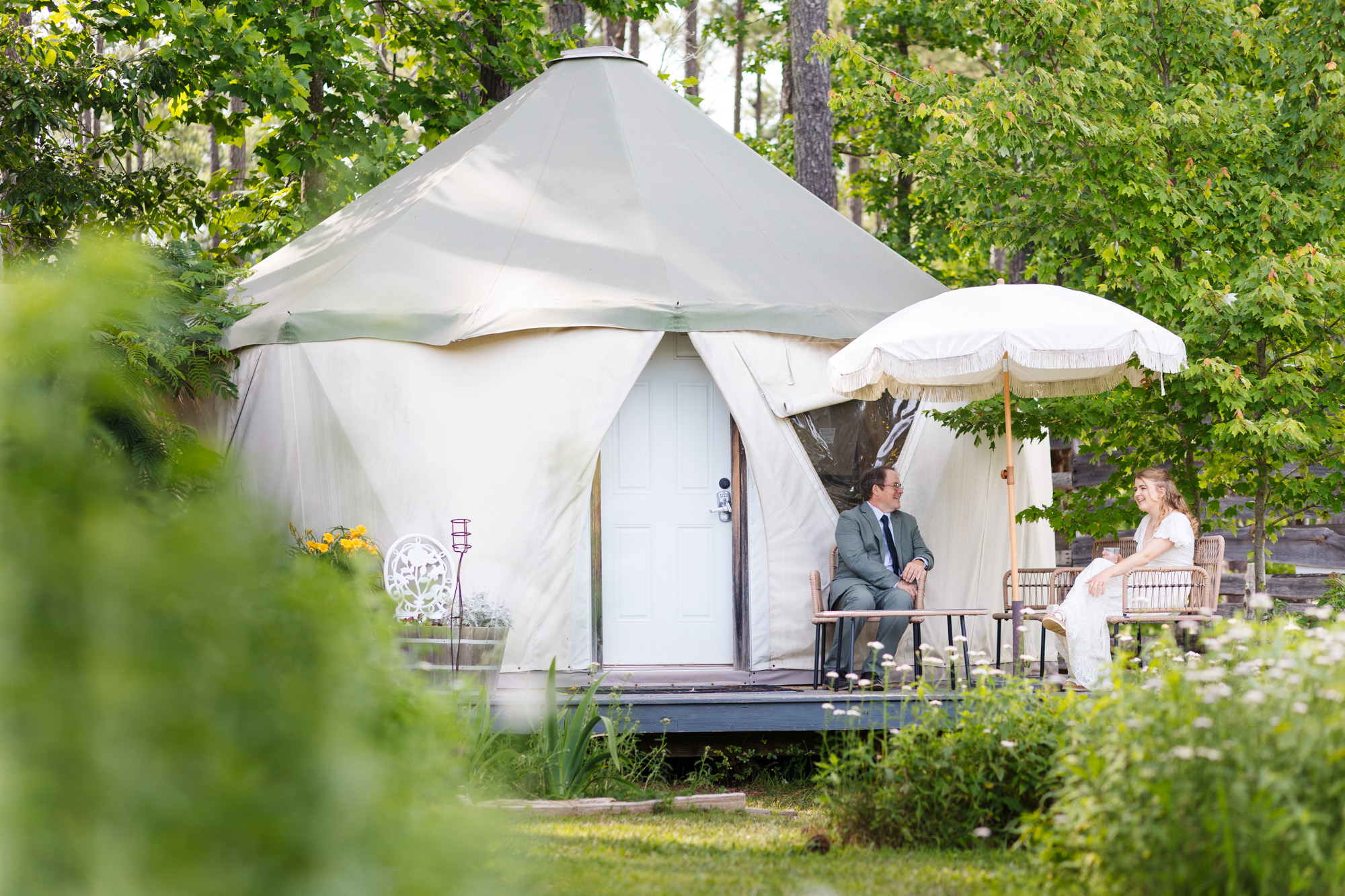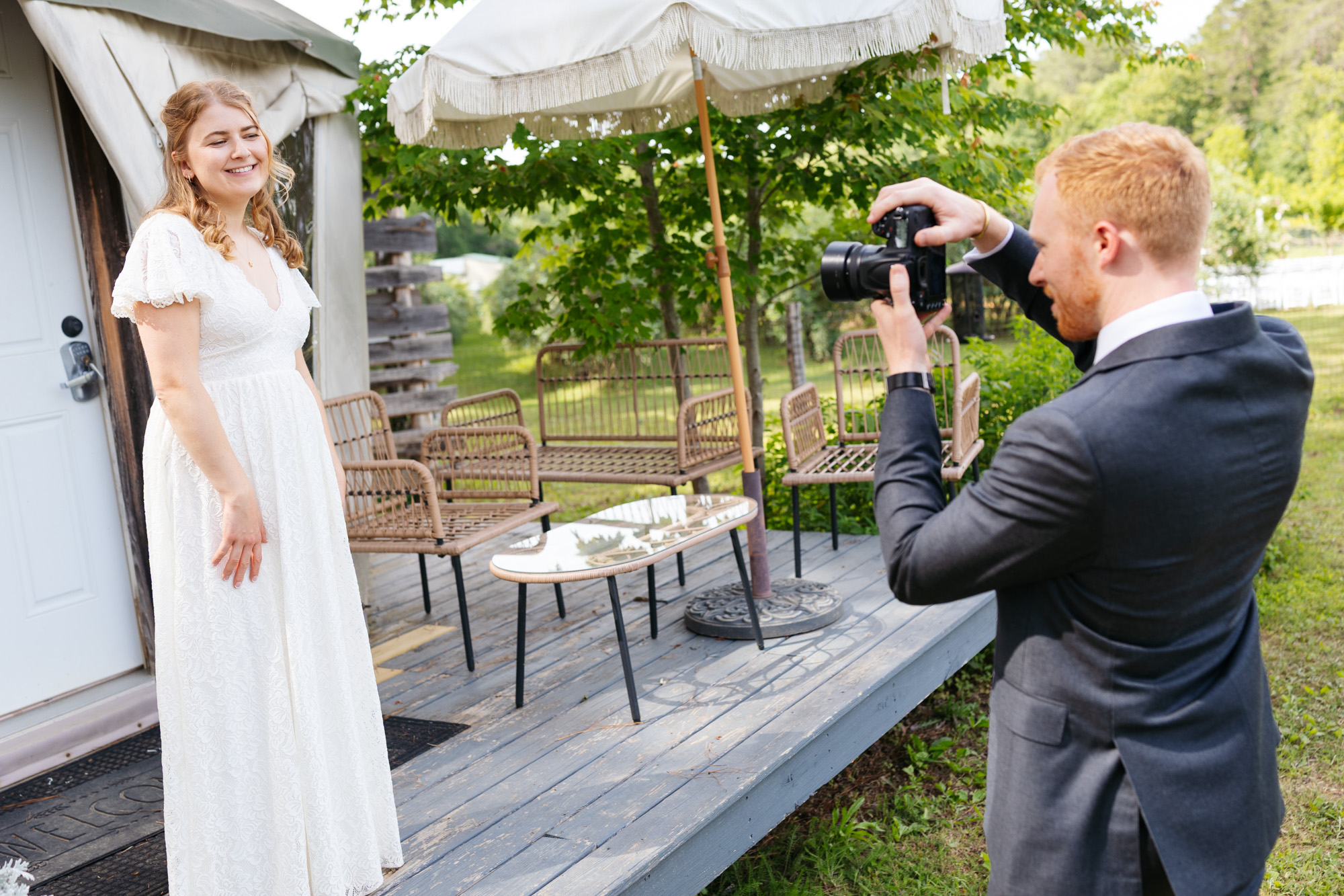 Recently it’s been quite a few backyard shindigs but this past weekend we had quite the celebration. Cassie and Will got married at the Honeysuckle Tea House in Chapel Hill and it was fantastic! The couple both reside in Dayton, Ohio but met while attending NC State. They went on their first date to grab a beer (which was $5 but Cassie convinced the bartender to give them it for $2 because they only had $2 between the two of them), and then parted ways as plans Will had with his dad. They met up again later that night for some Cookout milkshakes and the way Will puts it- the rest was history. Beer and live music have since been a staple of their relationship.